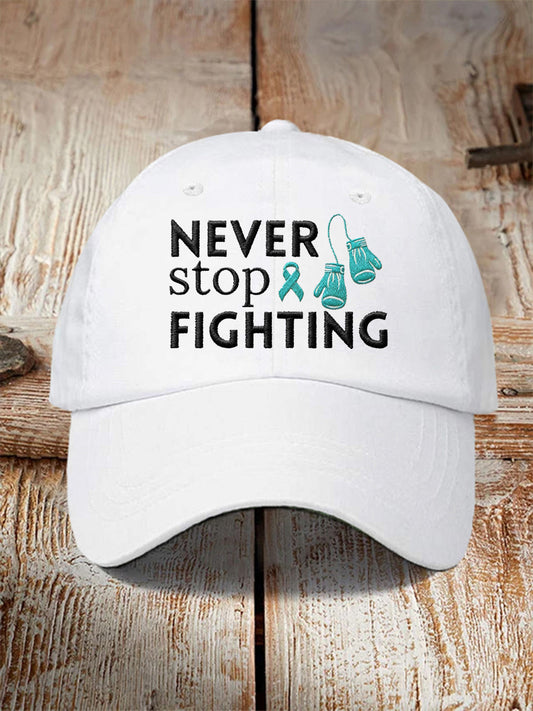 Unisexe ne jamais cesser de combattre le chapeau de sensibilisation au cancer de l'ovaire ruban sarcelle