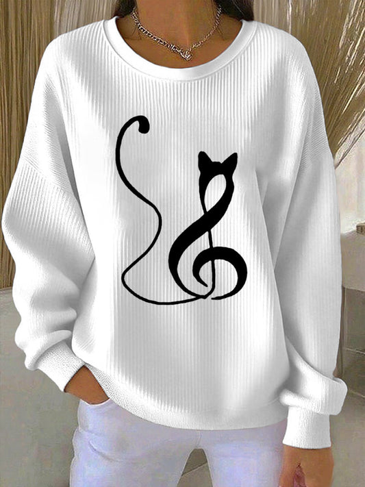 Femme Coupe Chat Côtelé Col Rond Sweatshirt