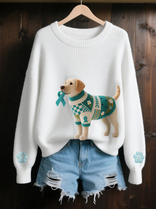 • Chandail de sensibilisation au cancer de l'ovaire à imprimé chien sarcelle pour femme