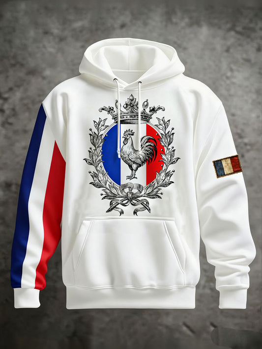 • Chandail à capuchon Drapeau Français Le Coq Gaulois Coupe standard Homme