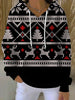 Chandail à capuchon classique noir Reindeer Tree Fair Isle pour femme