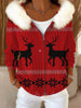 Chirstmas Bold Reindeer Print Manteau à col en fourrure pour femmes