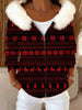 Femmes Chirstmas Élégant Rouge Flocon De Neige Renne Col De Fourrure Manteau