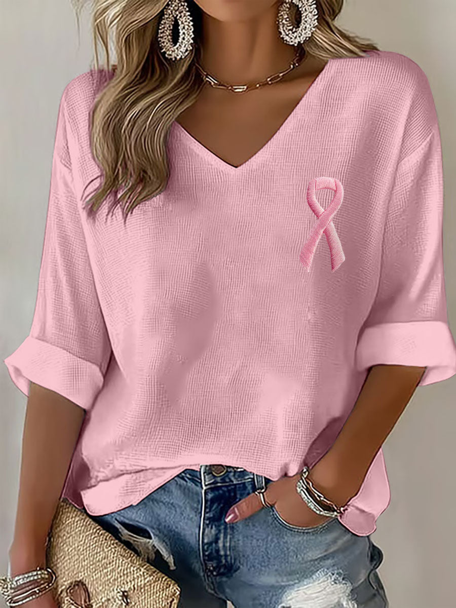 Femmes de la sensibilisation du cancer du sein rose ruban V-Neck Tops