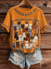 Haut à manches courtes en tricot confortable imprimé animal artistique pour femme
