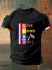 Live Good Be True Print Vintage Fashion T-shirt à manches courtes pour hommes
