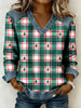 Motif de Plaid de Noël des femmes Patchwork Art V-Neck Top