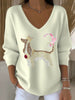 Pull Femme Diamant Chien Brodé Rose Ruban Col V