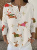 Pull Henley Festive Teckel Imprimé Noël Femme