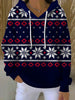 Sweat à Capuche Fair Isle Flocon de neige rouge marine pour femme
