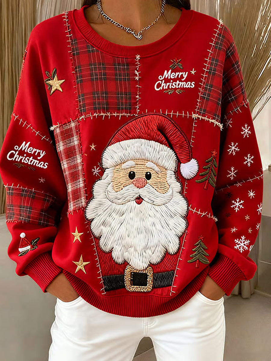 Sweat-shirt décontracté à imprimé rétro de Noël pour femmes