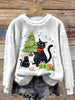 Sweat-shirt vintage à manches longues motif de chat de Noël