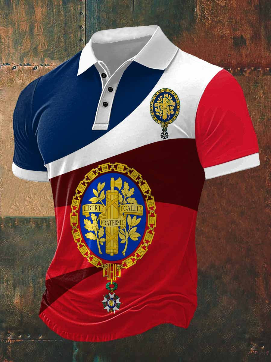 T-shirt à manches courtes France Badge Print Polo pour homme