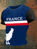 T-shirt à manches courtes France Coq Print Vintage Fashion pour hommes