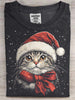T-shirt Décontracté Chat de Noël Imprimé à Manches Courtes