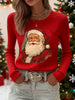 Top à manches longues décontracté imprimé Père Noël pour femmes