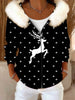 Veste à col en fourrure à imprimé renne à pois noir pour femme