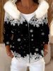 Veste Femme Noire Imprimé Flocon De Neige À Col Fourrure
