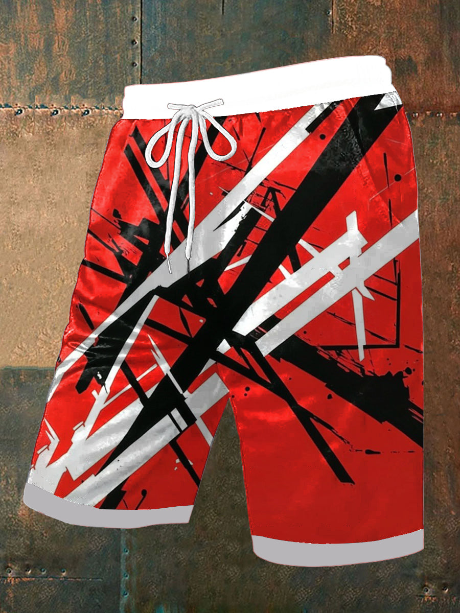 Vintage Guitar Lines Music Festival Graffiti Abstract Print Casual Pocket Drawstring Shorts pour hommes