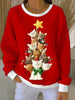 Arbre de Noël des femmes mignon chat art côtelé col rond Sweatshirt