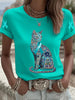 Cancer de l'ovaire chat imprimé mode Vintage lâche T-shirt à manches courtes femmes