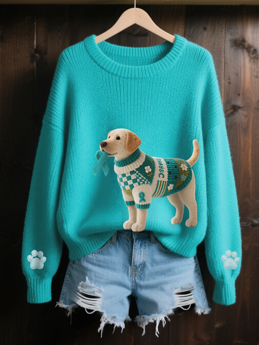 Chandail de sensibilisation au cancer de l'ovaire à imprimé chien sarcelle pour femme