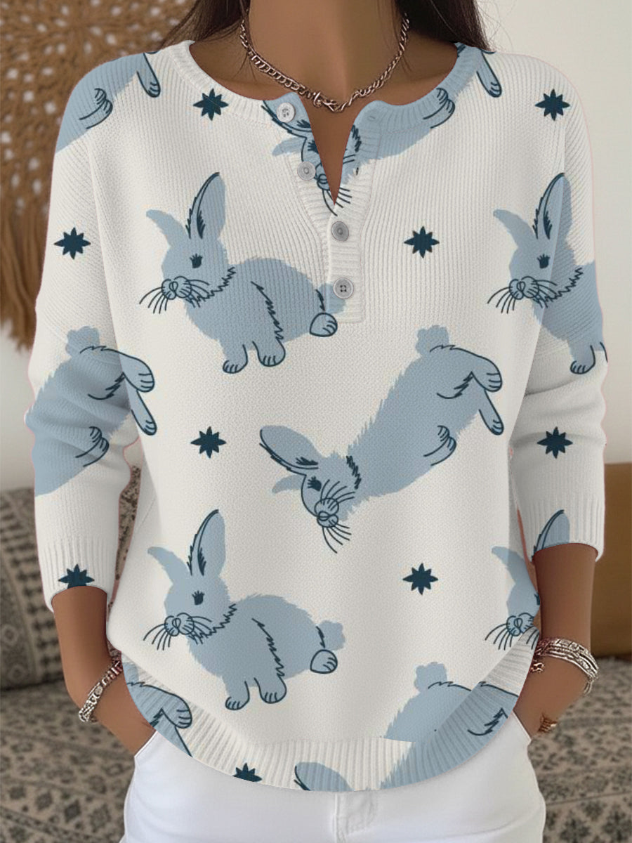 Chandail Henley Adorable Bunny Print Femme