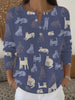 Chandail Henley Minimaliste Chat Imprimé Femme