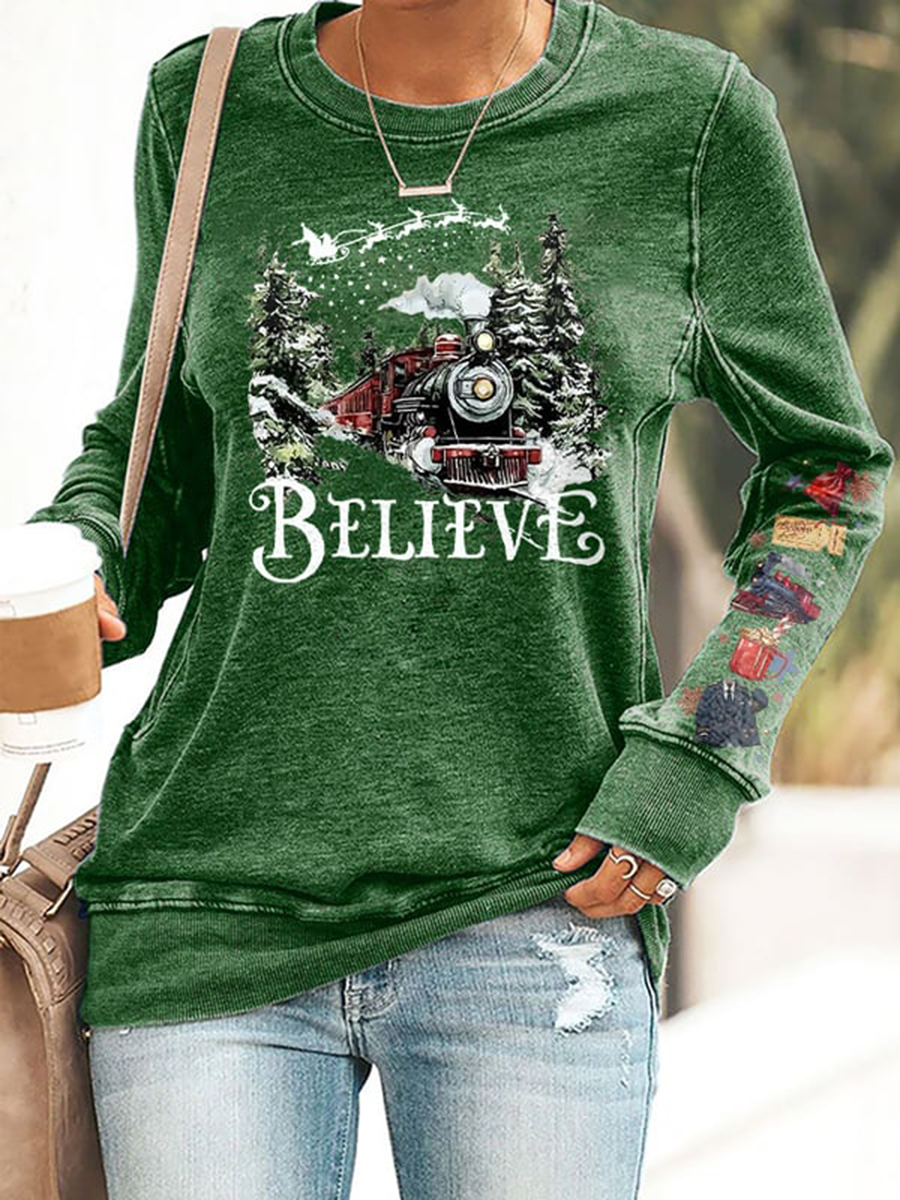 Des années 90 rétro film de Noël imprimé sweat-shirt ajusté des femmes