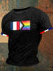 Drapeau de la France des hommes et drapeau arc-en-ciel Imprimer Vintage Fashion T-shirt à manches courtes