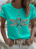 Femmes Cancer de l'ovaire libellule imprimé mode Vintage lâche T-shirt à manches courtes
