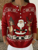 Femmes de Noël Père Noël Et Renne Imprimer Boutons Décontractés à Manches Longues Top