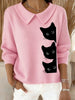 Femmes Funny Cat Print Cat Lovers Casual Baby Doll Collar Top