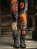 Femmes Halloween Noir Chat & Citrouille Patchwork Art Leggings