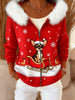 Femmes Rétro Noël Animal Art Confortable En Peluche Cardigan À Capuche
