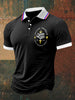 French Badge Print Polo Neck T-shirt à manches courtes pour hommes