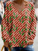 Haut Décontracté Rétro à Manches Longues Imprimé Noël