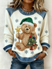 Les femmes de Noël Vintage Ours Arbre Denim Patchwork Sweatshirt