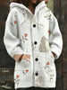 Manteau long à capuche à imprimé floral et chat romantique pour femmes