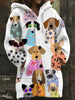 Manteau Long à Capuche Imprimé Chien Coloré Femme