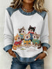 Mignon Chat Imprimé Denim Patchwork Waffle Top des femmes