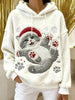 Mignon de Noël Cat Art Print Casual Flanelle Hoodie des femmes