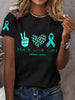 Peace Love Cure Teal Ruban de soutien sensibilisation au cancer de l'ovaire des femmes Tee