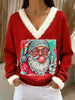 Père Noël rétro pour femmes soufflant des bulles en vrac à manches longues chandail garni de fourrure