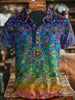 Polo Décontracté à Manches Courtes Dégradé de Couleur Imprimé Mandala