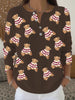 Pull Henley élégant à imprimé ours en peluche marron pour femmes