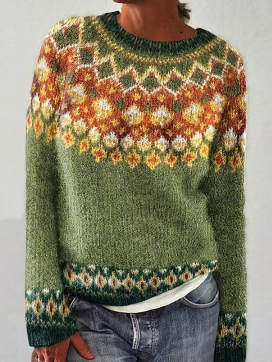 Pull islandais pour femme Jacquard Casual confortable pull col rond