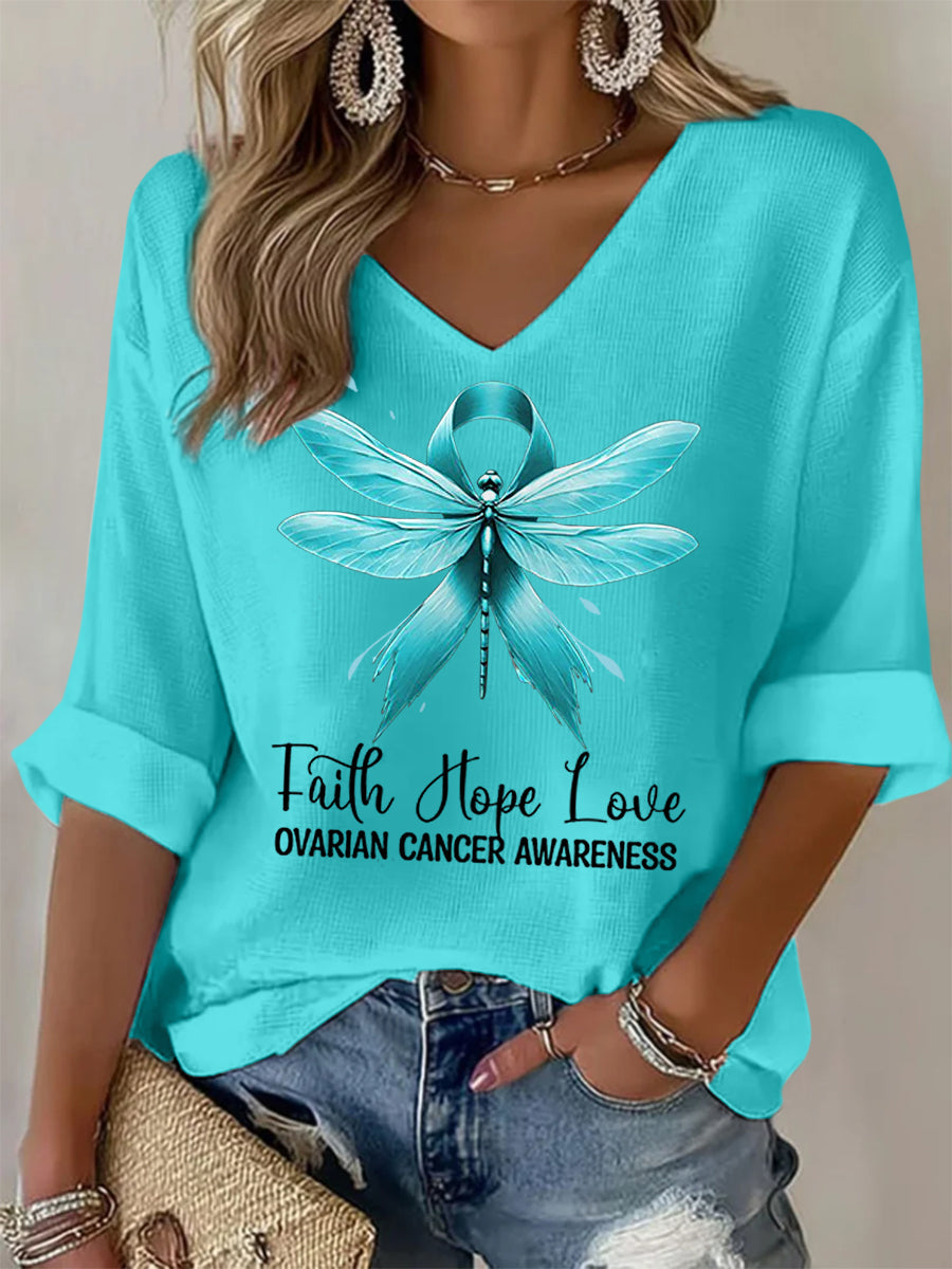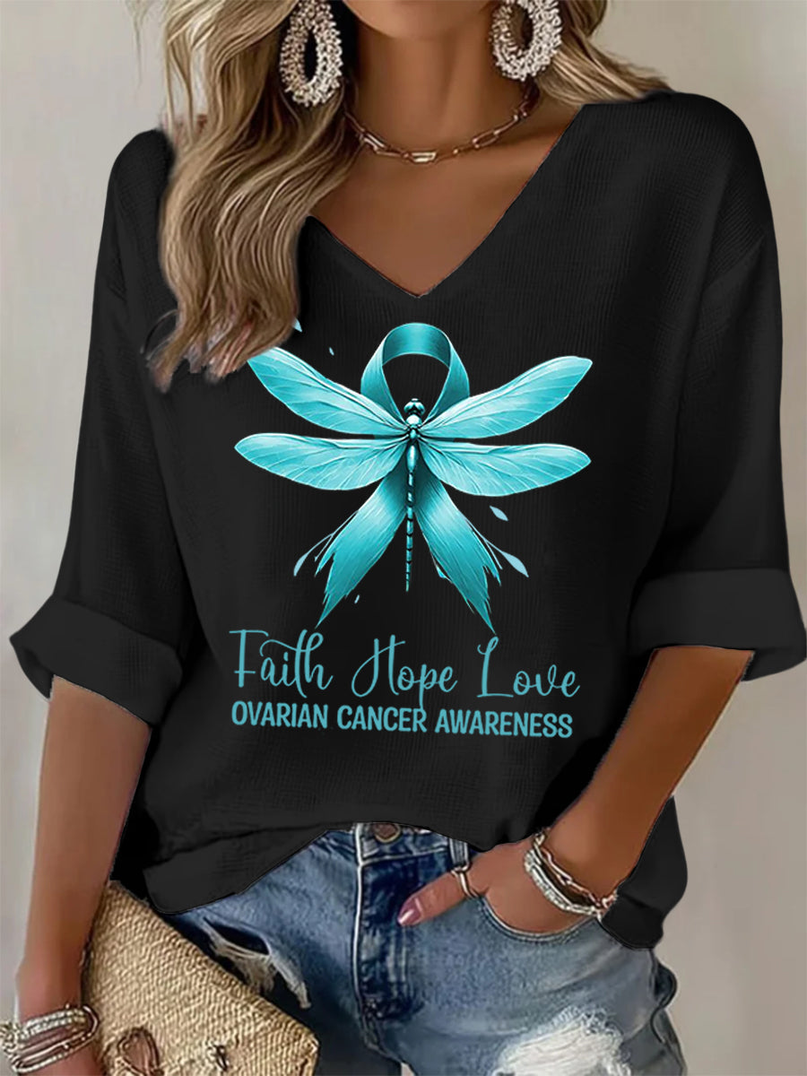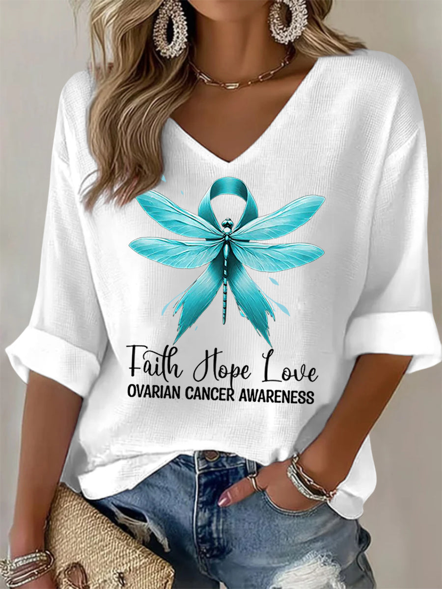 Sensibilisation au cancer de l'ovaire à imprimé libellule pour femmes