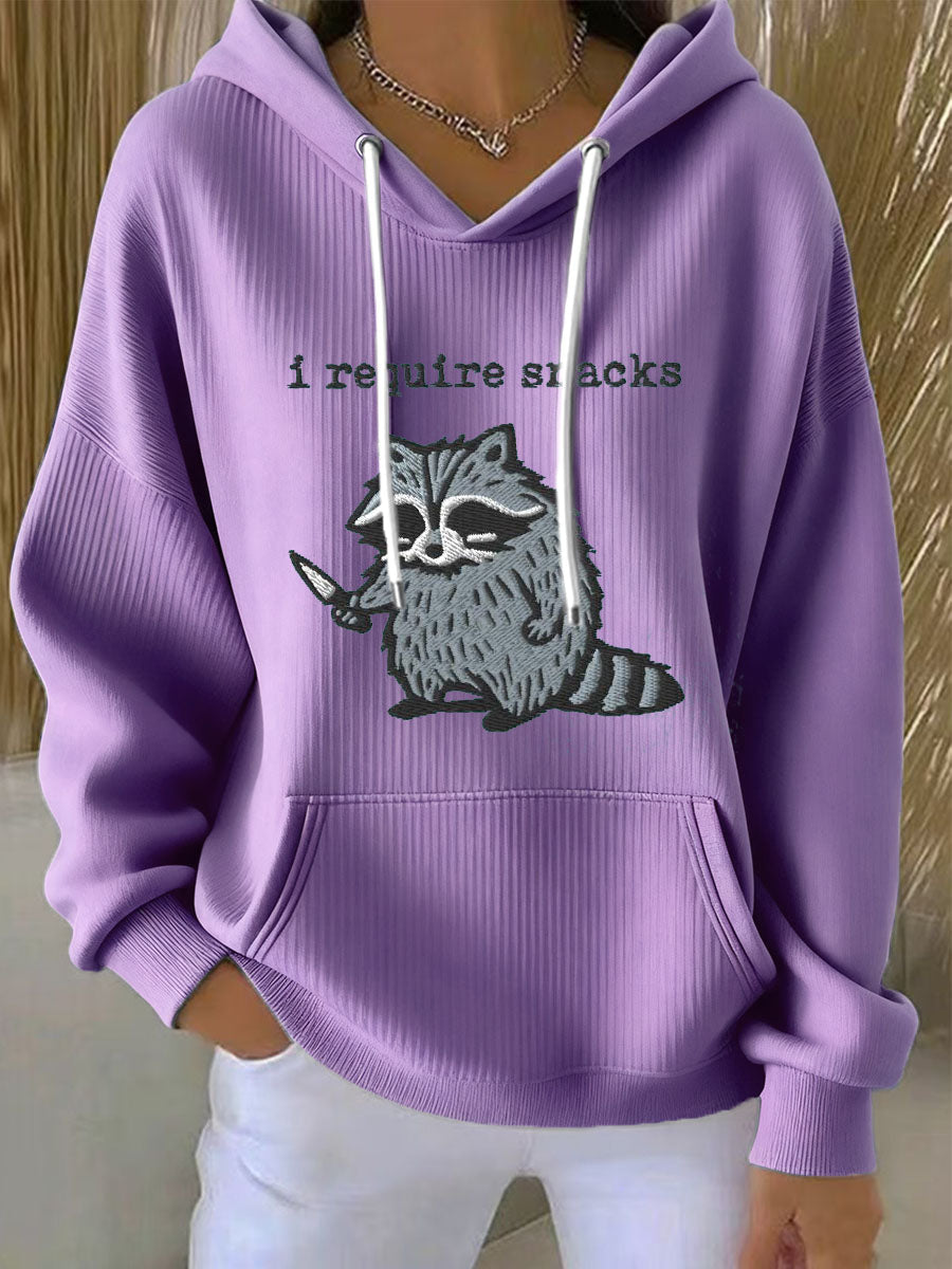 Sweat à capuche brodé drôle de raton laveur pour femmes