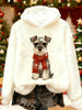 Sweat à capuche décontracté en flanelle imprimé chien mignon de Noël pour femmes